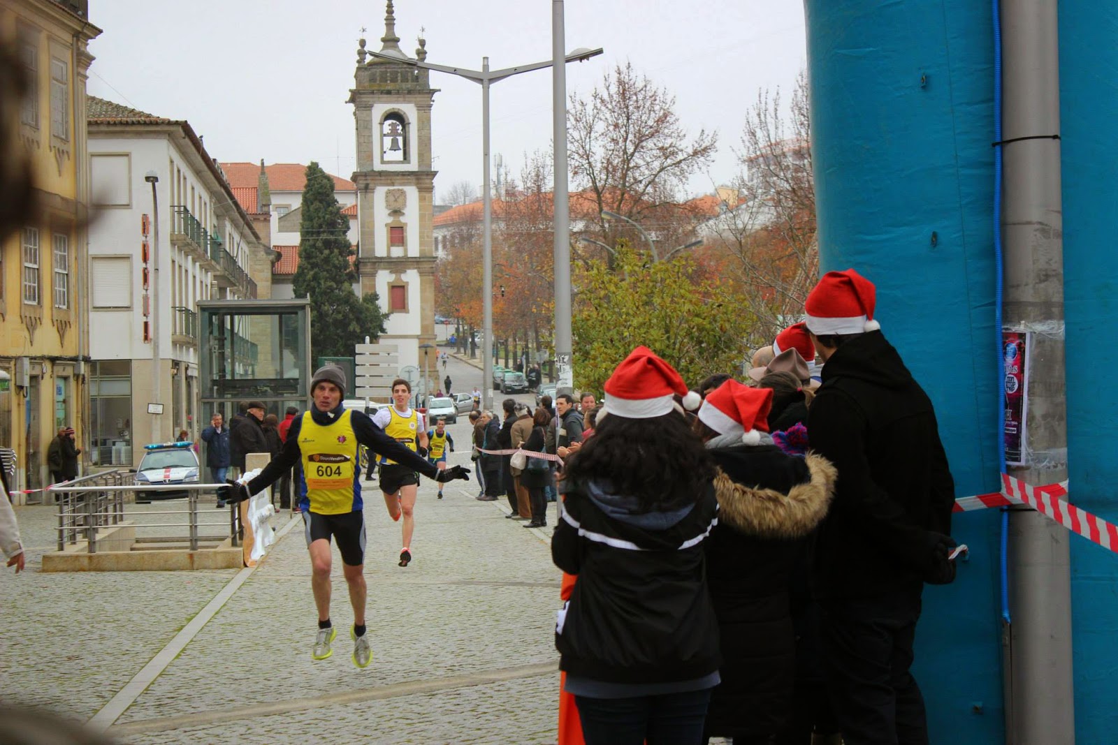 Chegados, pés fora das carrinhas somos confrontados com uma manhã muito fria, havia, ainda, muito nevoeiro em toda a cidade de Vila Real, cidade que percorremos até chegar ao local de partida, partida instalada no Regimento de Infantaria 13, aí, com a porta de armas franqueada, detive-mo-nos por uns instantes junto ao sentinela, franqueando de seguida, o portão principal e no papel de invasor. Esta S.Silvestre de Vila Real é diferente, esta envolvência com a unidade militar dá-lhe um carisma diferente e então quando um graduado de camuflado vestido levanta a sua g3 e dispara o tiro de partida sentimos um arrepio na coluna e lá fomos velozmente com o intuito de vencer estes 10 Kms todos eles feitos na cidade. Os nossos 11 elementos , cada qual com o objectivo delineado, colocaram-se bem, até para evitarem toques, uma vez que o local de partida pedia uma saída rápida. nosso primeiro elemento a chegar à meta foi Bruno Vieira e a primeira Amélia Vieira, destacando-se a ida ao pódio de Paulo Paiva Sousa, Joaquim Barbosa e Helena Mourão no escalão de veteranos.