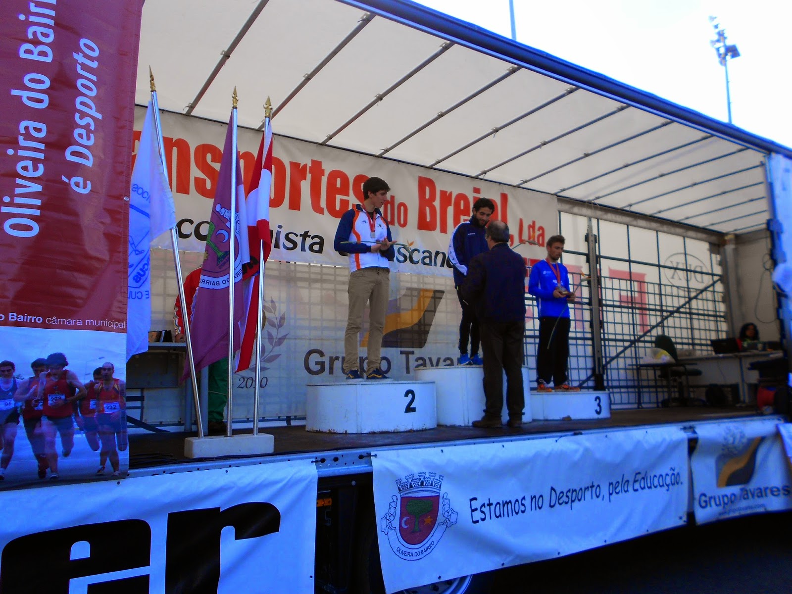 A pista de cross, montada no Parque dos Pinheiros Mansos em Oliveira do Bairro, apresentou um piso digno de um corta-mato, apesar do desenho colocar, quanto a nós, cotovelos a mais originando muitas quedas e torções, daí, muito atletas a coxear no final. O Grupo Desportivo, quinze elementos, competiu em Juvenis, Juniores, Seniores Femininos e Masculinos e uma vez que este Campeonato Distrital de Corta-Mato Longo integrava o Grande Prémio de Oliveira do Bairro, os atletas obtiveram resultados em outros escalões. Ao darmos nota do ocorrido, e na dificuldade de narrarmos tudo, exaltaremos os aspectos mais relevantes e o mais relevante foi a disputa para apurar o campeão de Juniores. Partida dada, José Vieira, pegou na corrida, levando consigo mais oito candidatos. Com passada firme, demolidora, o nosso representante foi-se livrando da concorrência, excepção feita a Isaac Rios, que com muito sacrifício (Isaac Rios era à partida dado por todos como o campeão antecipado) seguiu na peugada do jovem de Castelo de Paiva e colhendo no final os frutos de se apresentar menos desgastado, pois o trabalho foi todo ele feito por José Vieira, que, e não é por ser nosso, merecia este campeonato. As seniores femininas, comandadas por Amélia Vieira, oitava classificada, mostraram, apesar do handicap de à ultima hora não constituírem colectivo, que há que contar com elas pois o espírito do Grupo, desta bandeira que amamos já está no seu ADN, o que fez com que Sandra Teixeira 14ª e Susana Oliveira 17ª, disfarçassem a sua inexperiência nestas andanças. Na prova de seniores masculinos colocamos alguns dos nossos peso pesados, à cabeça o polivalente Vítor Barbosa, secundado por Bruno Vieira, atrás os elementos que acompanharam a nossa formação iam ajustando posições, até, porque, devido à nossa metodologia, a nossa forma não é a melhor, para dignificarem a posição colectiva, conseguindo-o. Na frente Vítor Barbosa puxava por Bruno Vieira, para que este não perdesse lugar no pódio Sub23 e quando pressentiu estabilidade galgou, este é o termo que se ajusta, até chegar, exausto ao sexto lugar, obtendo uma das nossas melhores classificações individuais em corta-mato de sempre.